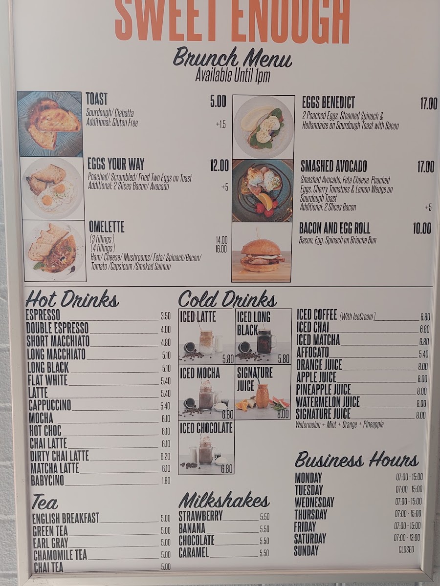 This menu is designed to accommodate quick orders or casual dining experiences, providing a balance of light meals and a comprehensive range of hot and cold beverages.